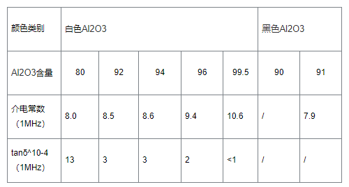 氧化鋁陶瓷通過氧化鋁純度進行分類,氧化鋁純度為>99%被稱為剛玉瓷,氧化鋁純度為99%、95%和90%左右被稱為99瓷、95瓷和90瓷,含量> 85%的氧化鋁陶瓷一般稱為高鋁瓷。黑色氧化鋁陶瓷基板多用于半導體集成電路及電子產(chǎn)品中,這主要是由于大部分電子產(chǎn)品具有高光敏性,需要封裝材料具有較強的遮光性,才能夠保障數(shù)碼顯示的清晰度,因此,多采用黑色氧化鋁陶瓷基板進行封裝。氧化鋁相關性能數(shù)據(jù)如圖:
