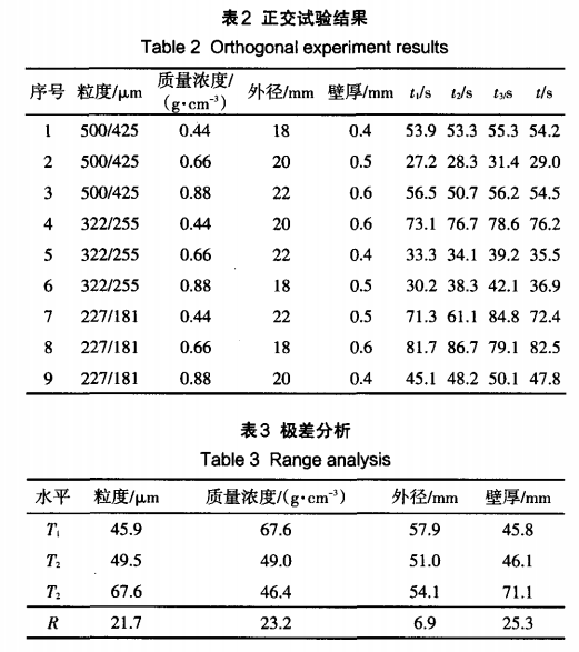 主軸轉(zhuǎn)速為2500rpm,軸向壓力為780N時,采用正交分析法獲得的試驗結(jié)果 ,如表2所示 。其中t、t2-,t、、t分別代表3次鉆孔的時間及平均時間。對表2的正交試驗結(jié)果進(jìn)行極差分析 ,獲得的計算結(jié)果 ,如表3所示 。其中 ( l、2、3)為各因素的 1、2、3水平試驗結(jié)果之和的平均值 ,R為極差 。 從表3可以知道 ,電鍍金剛石鉆頭的結(jié)構(gòu)參數(shù)對碳化硅陶瓷孔加工效率的影響程度為:壁厚>濃度>粒度>外徑 ,鉆頭的壁厚對孔加工效率的影響最大,外徑對其影響最小 。因素最優(yōu)水平組合為鉆頭壁厚 0.4 mm、金剛石磨粒的質(zhì)量濃度 0.88g/cm 、粒度500/425 m、鉆頭外徑20mm,此時碳化硅陶瓷的孔加工效率最高。圖3為電鍍金剛石鉆頭的結(jié)構(gòu)參數(shù)對碳化硅陶瓷