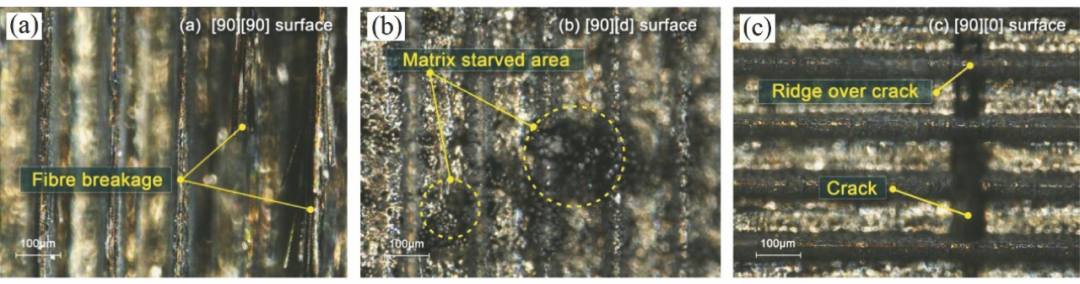 在長脈沖激光加工過程中,激光誘導等離子體的電離程度不高,材料去除主要依靠熱累積所引起的熔化與氣化,加工過程中熱作用非常明顯。CMC-SiC由多層纖維編織而成,纖維能夠承載并吸收熱量,熱應力集中會導致材料產生分層、基體缺失及微裂紋等加工缺陷。在CMC-SiC的激光加工過程中,表面氧化同樣是一項需要重點控制的加工缺陷。